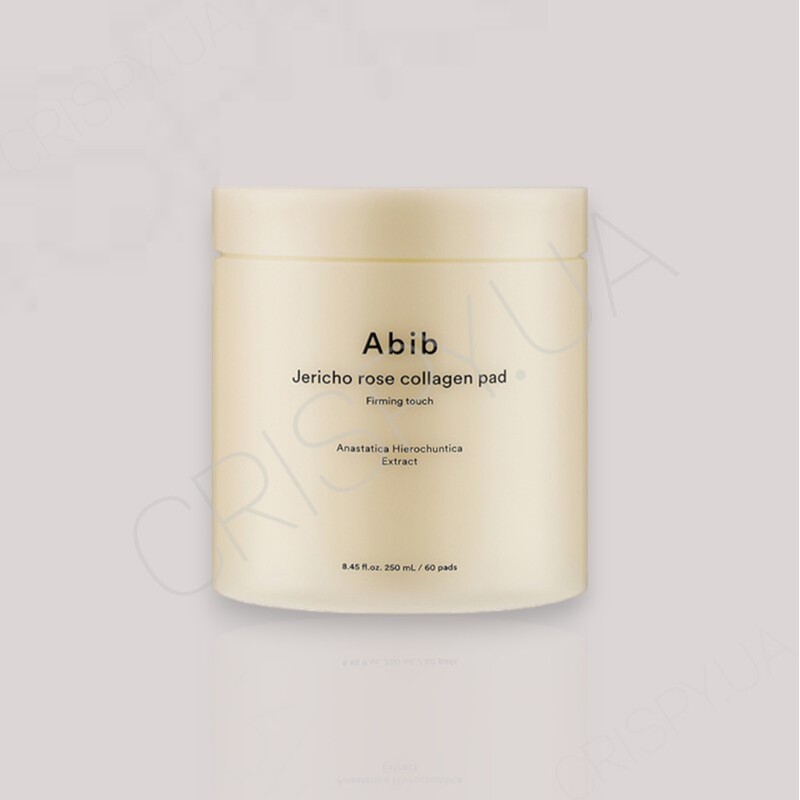 Abib Jericho Rose Collagen Pad Firming Touch — зволожувальні колагенові тонер-пади з екстрактом єрихонської троянди, які підвищують пружність шкіри, інтенсивно зволожують та надають обличчю свіжого, доглянутого вигляду. Пади м’яко тонізують, розгладжують текстуру шкіри та готують її до подальшого догляду.