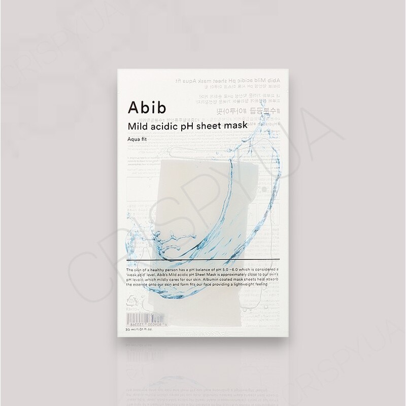 Abib Mild Acidic pH Sheet Mask Aqua Fit — інтенсивно зволожувальна тканинна маска зі слабокислим pH, яка швидко усуває зневоднення, відновлює водний баланс та повертає шкірі свіжість і пружність. Маска підтримує природний захисний бар’єр, робить шкіру гладенькою, м’якою та сяючою.
