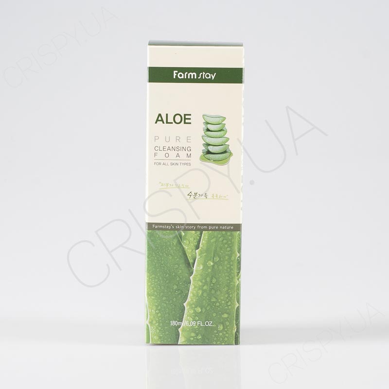 Пінка з алое віра FARMSTAY ALOE PURE CLEANSING FOAM для вмивання подразненої, чутливої, пошкодженої, запаленої шкіри обличчя. Ретельно очищає від усіляких забруднень, звужує пори та виводить із них закупорки. Протистоїть запаленню, сприяє загоєнню мікротріщин. Зволожує, захищає шкіру від старіння. Освітлює тон, робить його яскравим, рівномірним.
