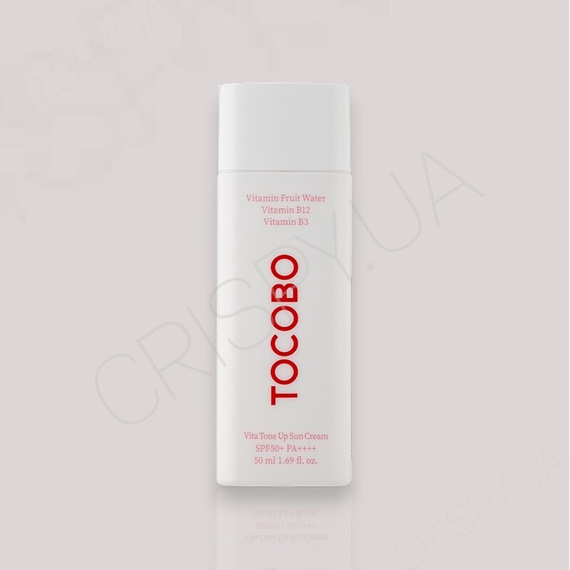TOCOBO Vita Tone Up Sun Cream SPF50+ PA++++ — сонцезахисний крем з вітамінним комплексом та ефектом вирівнювання тону, який забезпечує надійний захист від UVA та UVB-променів, освіжає колір обличчя та дарує шкірі природне сяйво. Легка текстура швидко вбирається, не залишає липкості та білого нальоту.